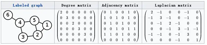 拉普拉斯矩阵:给定一个有n个顶点的图G,它的拉普拉斯矩阵: