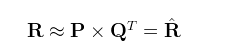 eR = np.dot(P,Q)# dot(P,Q) 表示矩阵内积,即Pik和Qkj,
