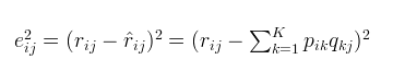 eij=R[i][j]-.dot(P[i,:],Q[:,j])